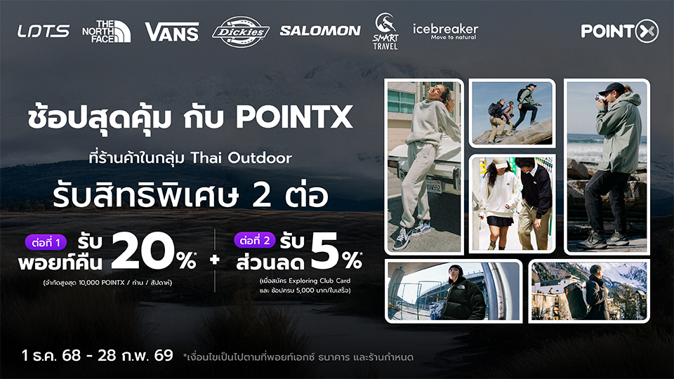 POINTX x Thai Outdoor Group ช้อปสุดคุ้ม กับ POINTX ที่ร้านค้าในกลุ่ม Thai Outdoor รับสิทธิพิเศษ 2 ต่อ