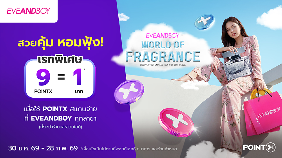 EVEANDBOY World of Fragrance 2026 ช้อปด้วย POINTX เรทพิเศษ 9 POINTX = 1 บาท