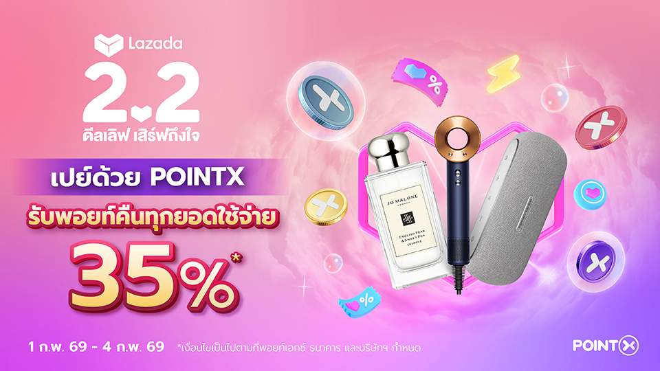 Lazada 2.2 ช้อปด้วยคะแนน POINTX รับพอยท์คืน 35% ทุกยอดใช้จ่าย