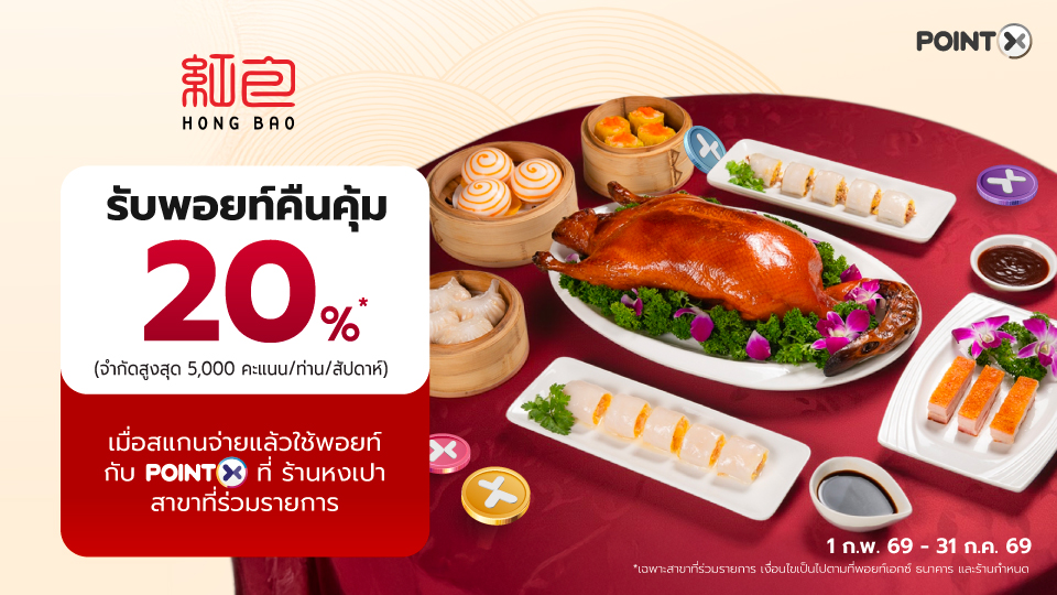สแกนจ่ายด้วย POINTX ที่ร้านอาหารหงเปา รับพอยท์คืน 20%