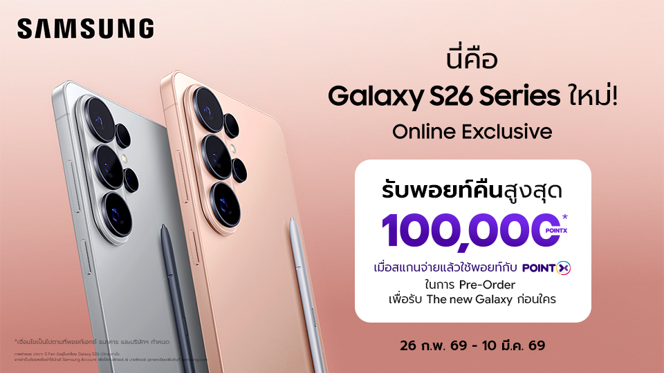 รับพอยท์คืนสูงสุด 100,000 POINTX ในการ Pre-Order เพื่อรับ The new Galaxy ก่อนใคร