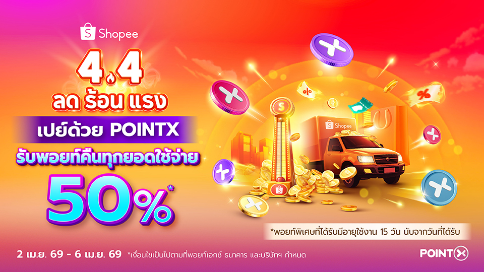 Shopee 4.4 รับพอยท์คืน 50% เมื่อจ่ายด้วย POINTX