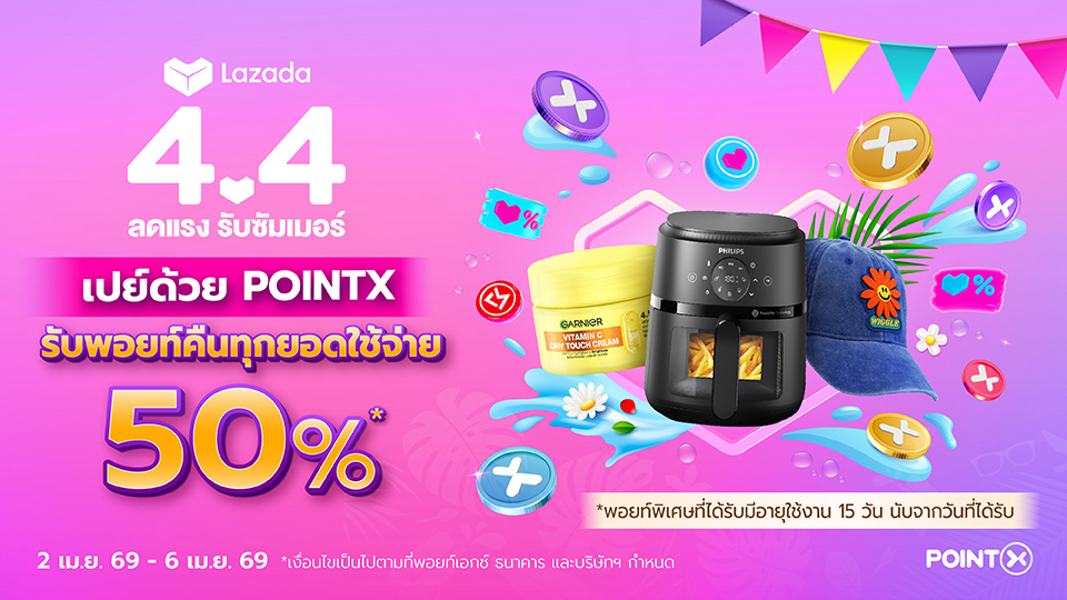 Lazada 4.4 ช้อปด้วย POINTX รับพอยท์คืน 50%