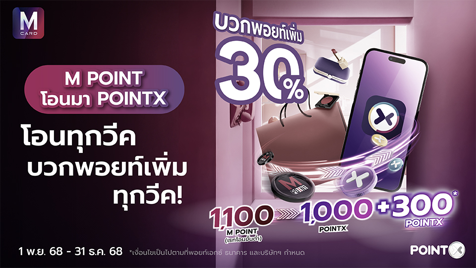 - จำกัดคะแนนพิเศษคืนรวมสูงสุด 12,000 POINTX ต่อท่าน ต่อสัปดาห์