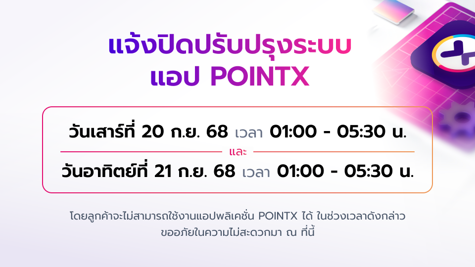 จำกัดพอยท์คืนสูงสุด 200,000 POINTX ต่อท่าน ตลอดระยะเวลาส่งเสริมการขาย ระยะเวลา 9 พฤศจิกายน 2568 [...]