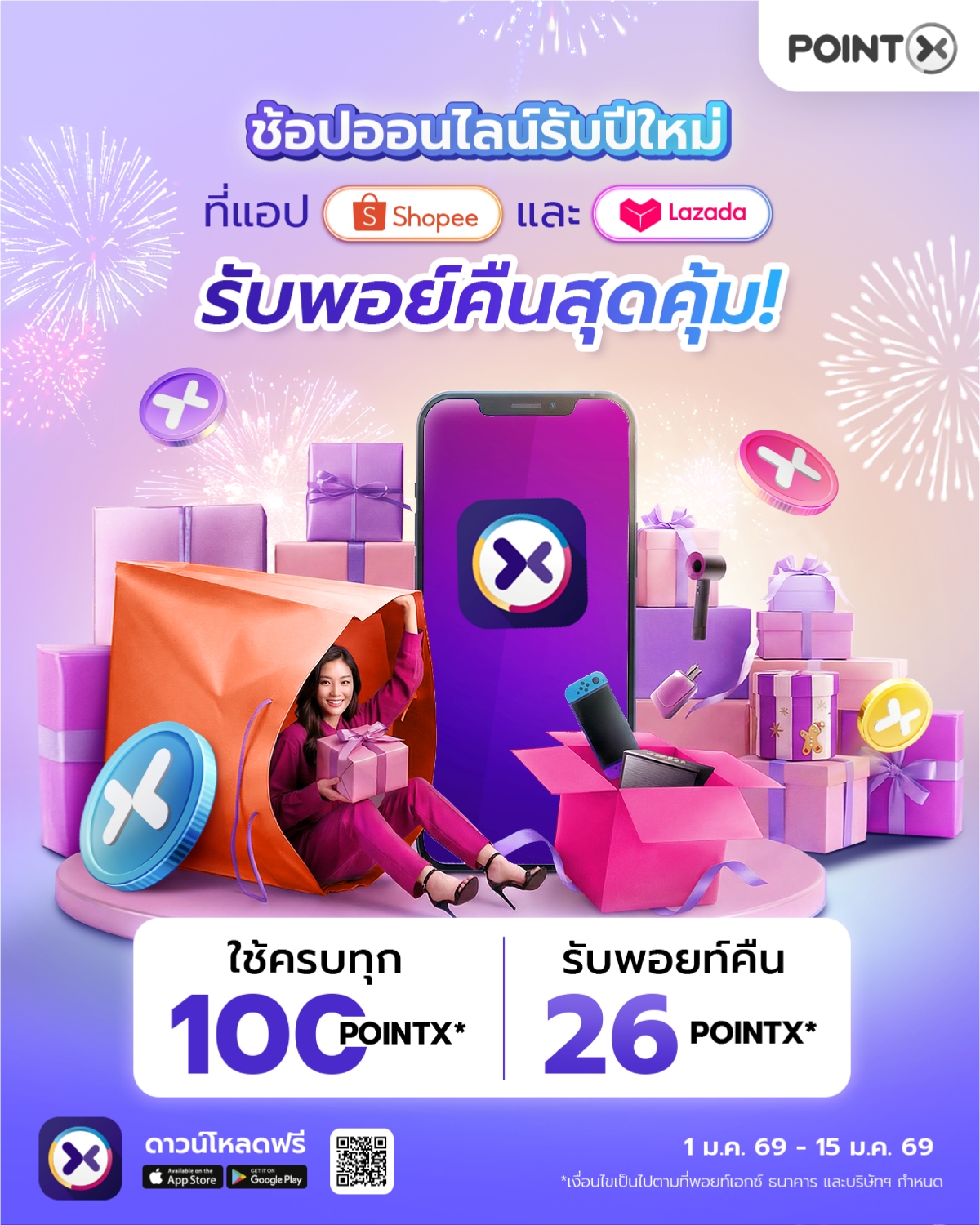 • จำกัดจำนวนพอยท์พิเศษคืน สูงสุด 26,000 POINTX / ท่าน ตลอดระยะเวลาส่งเสริมการขาย