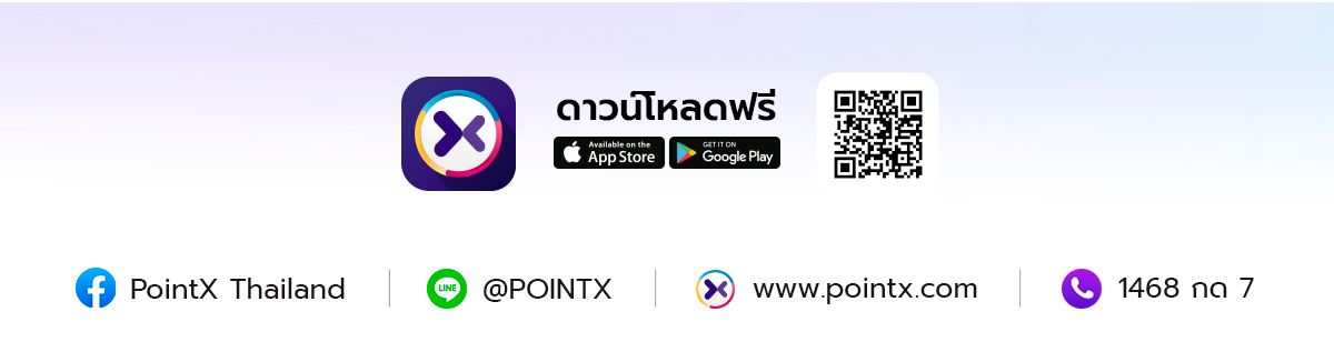 - สอบถามข้อมูลเพิ่มเติมได้ที่ Call Center สำหรับบริการ POINTX โทร. 1468 กด 7