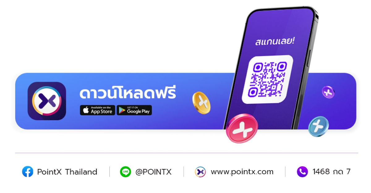 • สอบถามข้อมูลเพิ่มเติมได้ที่ Call Center สำหรับบริการ POINTX โทร. 1468 กด 7