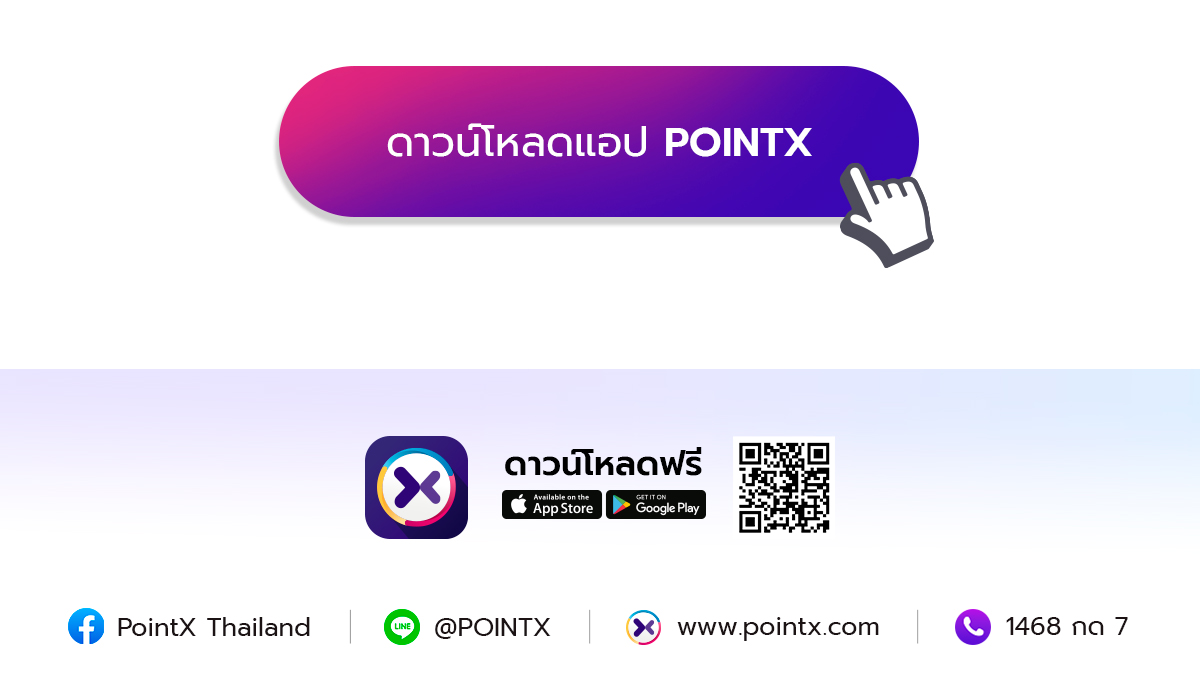 • สอบถามข้อมูลเพิ่มเติมเกี่ยวกับ POINTX ที่ Call Center สำหรับบริการ POINTX โทร. 1468 กด 7