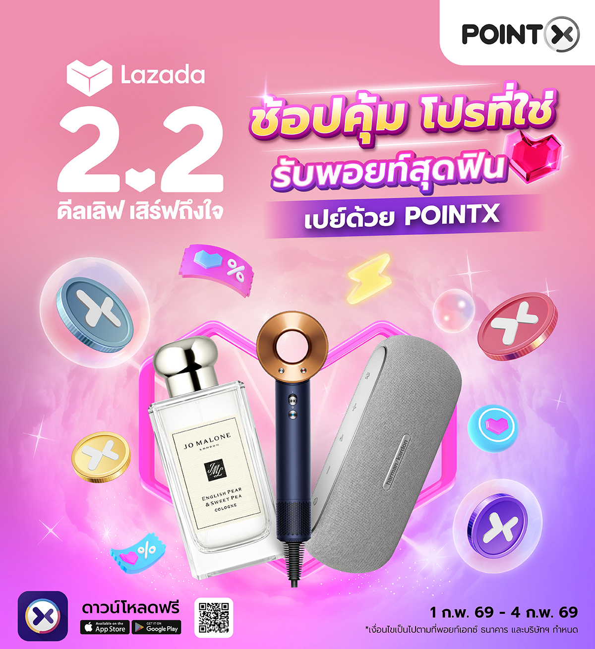 - จำกัดคะแนนคืนสูงสุด 200,000 คะแนน POINTX ต่อท่าน ตลอดระยะเวลาส่งเสริมการขาย