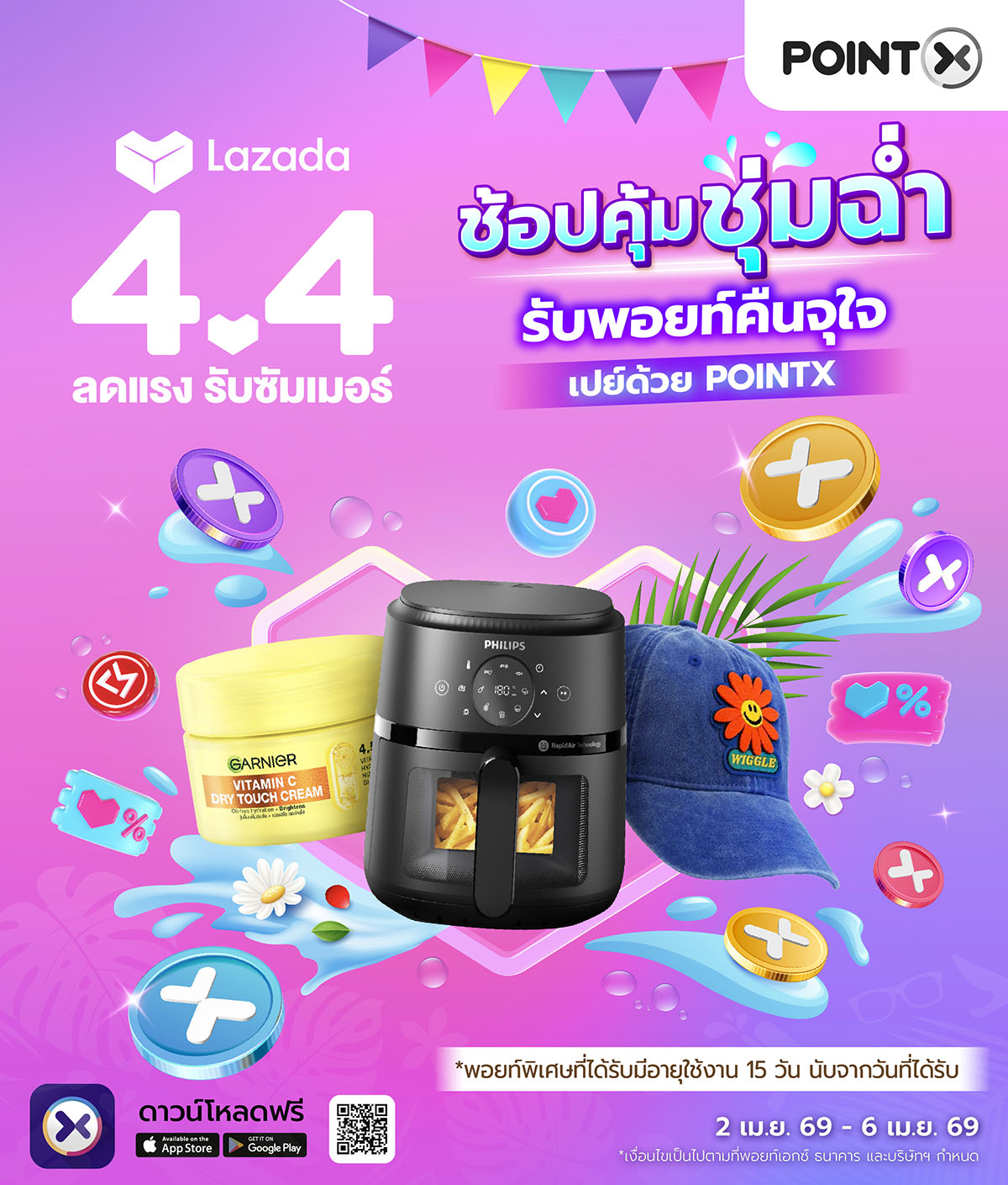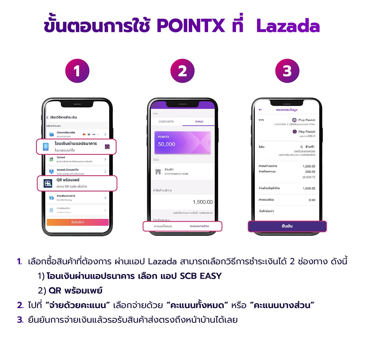 - ไม่กำหนดการใช้คะแนน POINTX ขั้นต่ำในการใช้จ่าย