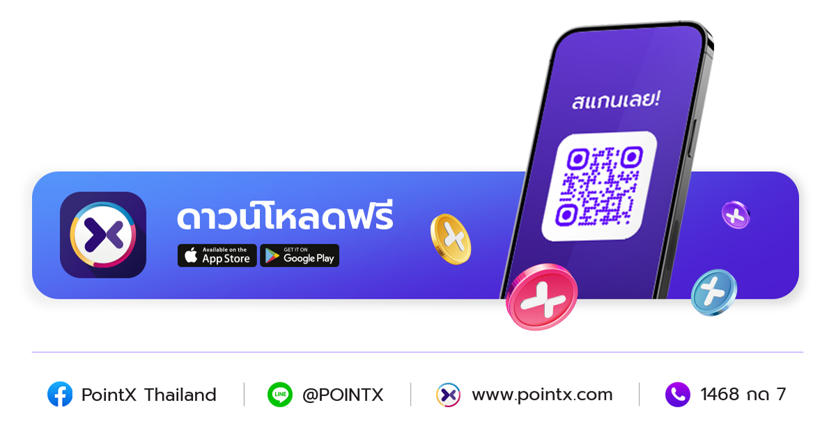 - สอบถามข้อมูลเพิ่มเติมโปรดติดต่อที่ Call Center สำหรับบริการ POINTX โทร. 1468 กด 7