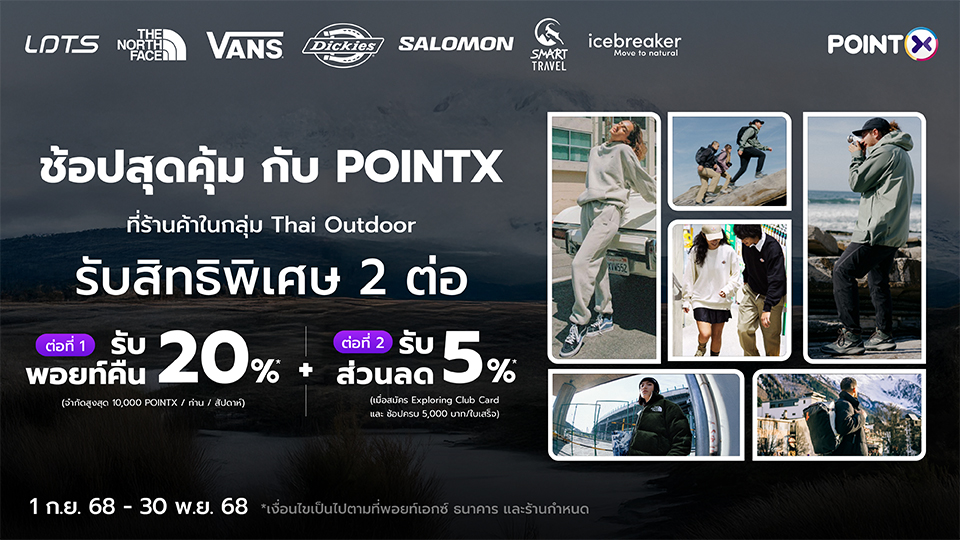 ช้อปสุดคุ้ม กับ POINTX ที่ร้านค้าในกลุ่ม Thai Outdoor รับสิทธิพิเศษ 2 ต่อ