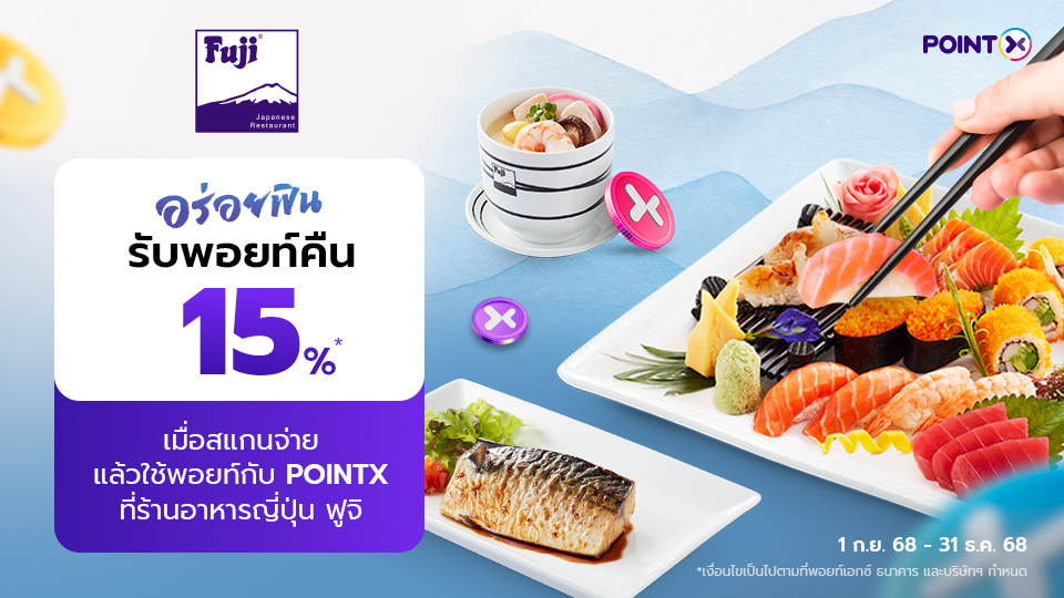 เมื่อสแกนจ่ายด้วย POINTX จำกัดพอยท์คืนสูงสุด 3,000 POINTX ต่อท่าน ต่อสัปดาห์ ระยะเวลา 1 [...]