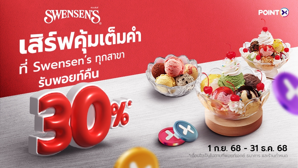 รับพอยท์คืน 30% ที่ Swensen’s ทุกสาขา