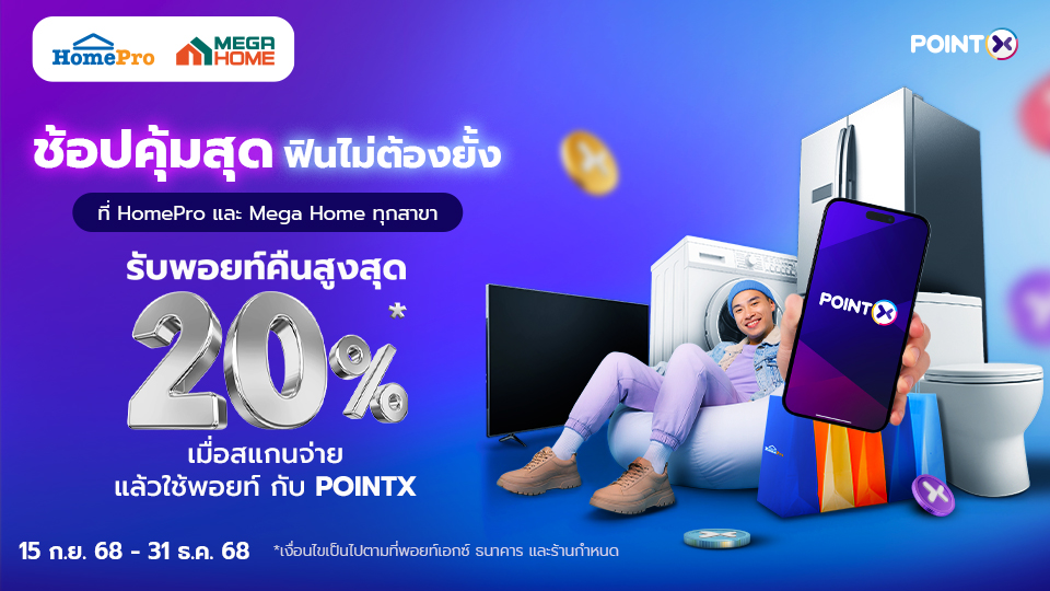 ใช้พอยท์ช้อป รับสุดคุ้ม! รับพอยท์คืนสูงสุด 30% เมื่อสแกนจ่ายกับ POINTX