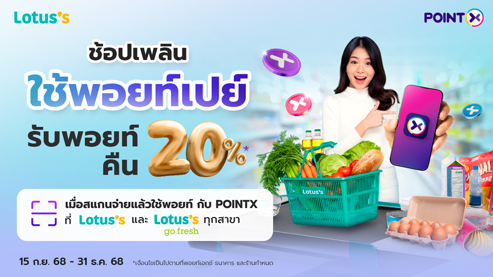 เมื่อสแกนจ่ายด้วย POINTX ผ่าน QR พร้อมเพย์ จำกัดพอยท์คืนสูงสุด 5,000 POINTX ต่อท่าน [...]