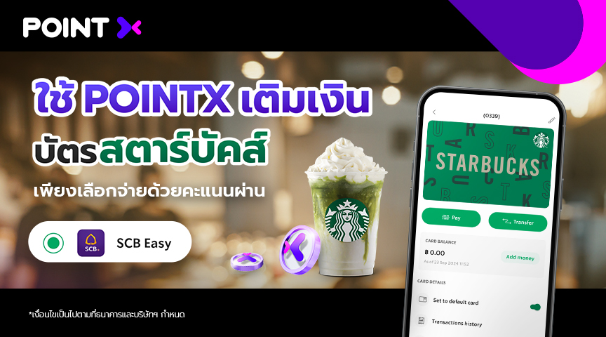 เติมเงินบัตรสตาร์บัคส์ด้วยคะแนน POINTX ได้แล้ววันนี้