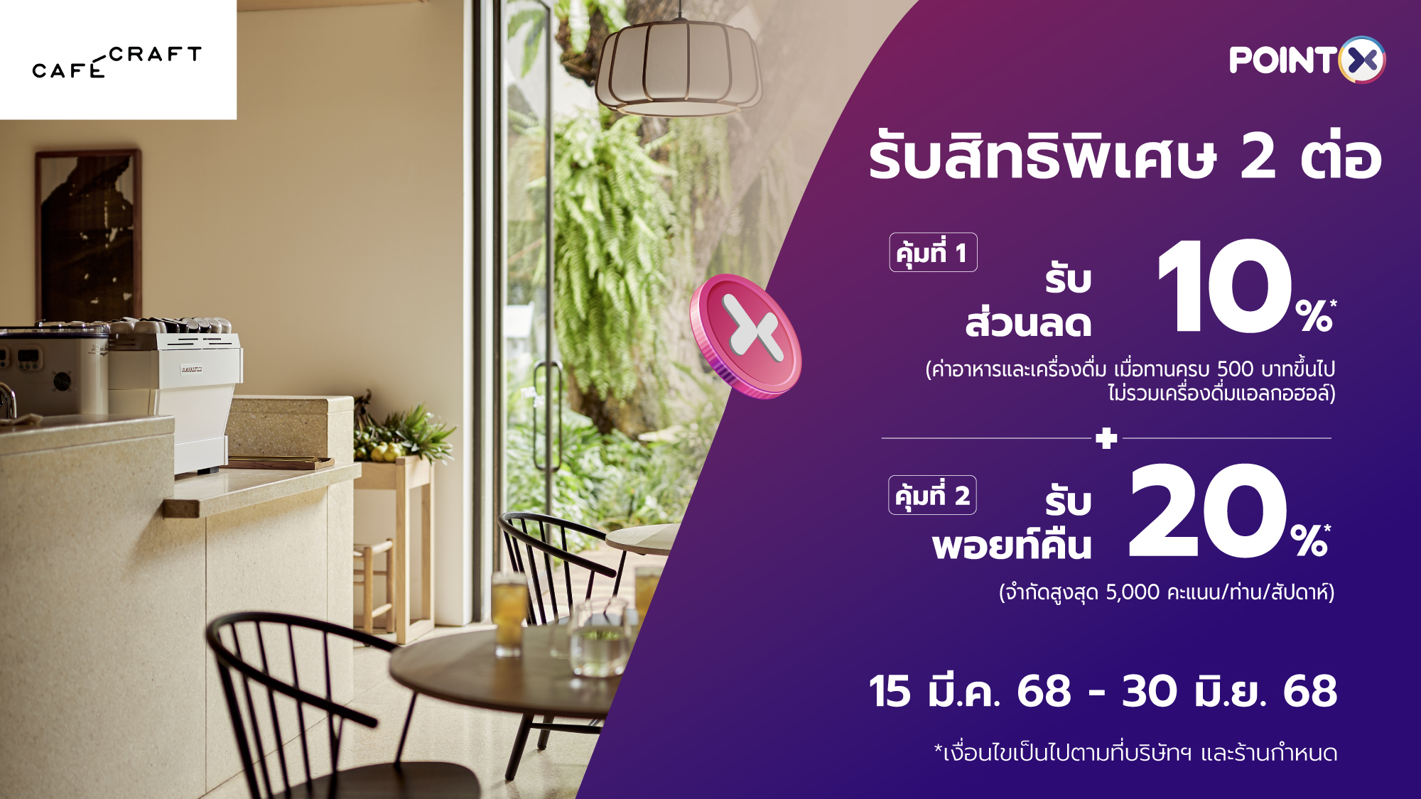 กินดื่มสุดฟิน กับ POINTX รับสิทธิพิเศษ 2 ต่อที่ ร้าน Café Craft