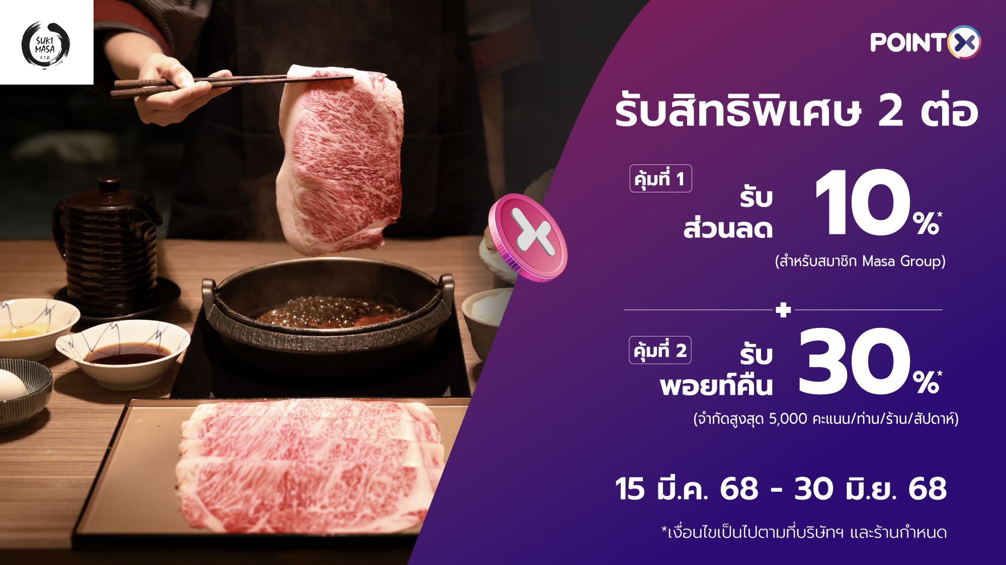 กินดื่มสุดฟิน กับ POINTX รับสิทธิพิเศษ 2 ต่อที่ ร้าน Suki Masa