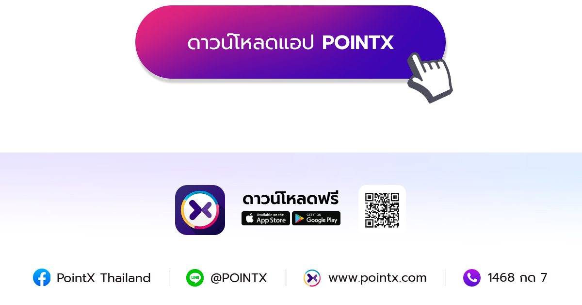 • การใช้บริการแลกคะแนน POINTX และ POINTX Application เป็นไปตามข้อกำหนดและเงื่อนไขการใช้บริการแลกคะแนน POINTX และ POINTX Application ตามที่ระบุไว้ใน POINTX Application