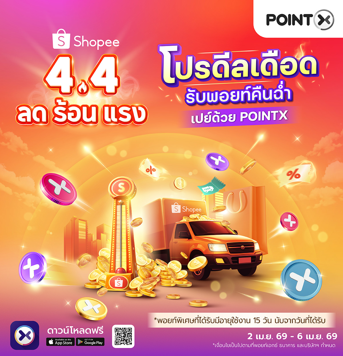 - ไม่กำหนดการใช้คะแนน POINTX ขั้นต่ำในการใช้จ่าย