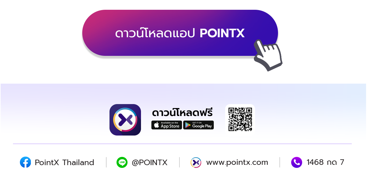 - สอบถามข้อมูลเพิ่มเติมที่ Call Center สำหรับบริการ POINTX โทร. 1468 กด 7