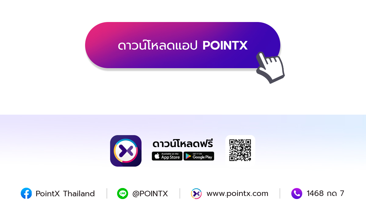 - สอบถามข้อมูลเพิ่มเติมที่ Call Center สำหรับบริการ POINTX โทร. 1468 กด 7