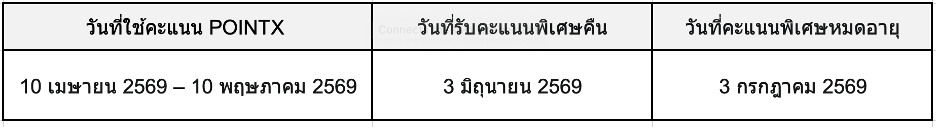 - ตารางรอบการโอนคะแนนเป็นไปตามที่กำหนดในประกาศของพอยท์เอกซ์